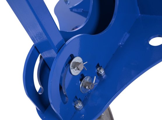 Finished in a high-visibility blue powder-coated finish, this unit is built to withstand demanding environments while resisting wear and corrosion. The three-wheel design enhances balance and maneuverability, making it easier to position trailers and equipment exactly where needed without the use of a vehicle.