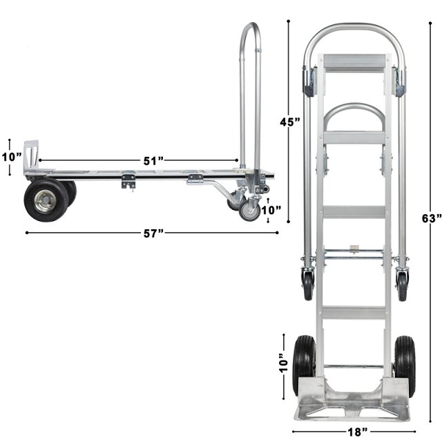- High load capacities: Designed to support heavy loads in both hand truck and cart configurations.