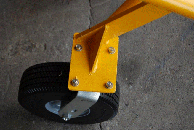 we buy this item for our jumping and slides and we have seen that is very easy to handle satff that wights a lot. the weels are strong. we are very happy with this product!!!!!! we recomend it.