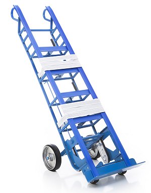 Double handles provide stability while moving loads up and down stairs.