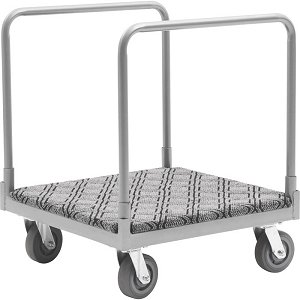 This 4-Wheel Cart with Carpeted Deck features a padded surface for scratch-free loading and unloading. Heavy-duty steel construction can handle heavy loads with ease, so this truck is perfect for moving mattresses, tables, panels and other awkward loads. 6in. TPR swivel casters roll smoothly and maneuver nicely. 2 side handles make pushing and pulling easy.
