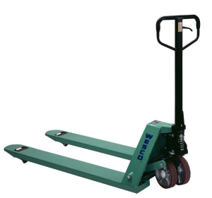 Wider 7" forks feature entry and exit rollers to ease in and out of pallets.