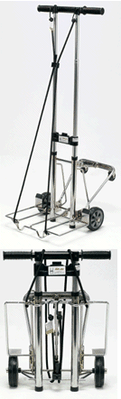 Patented rear platform, with 2" swivel caster wheels, folds into locked